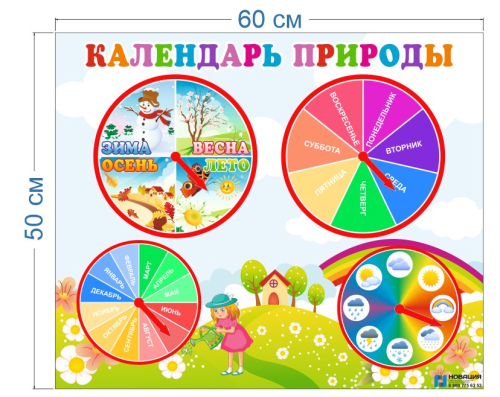 Стенд Календарь природы, 4 стрелки 600х500 мм