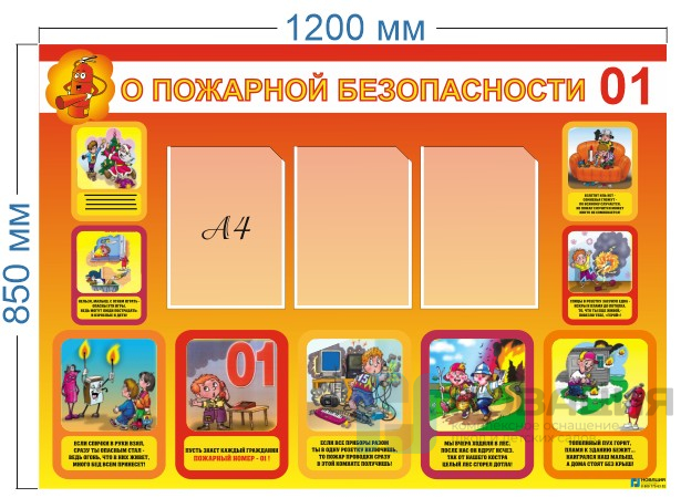 Стенд поможет обучить детей правильному обращению с огнем и электроприборами. На стенде изображены различные тематические картинки с советами о том, как следует вести себя в различных экстренных ситуациях, связанных с огнем и пожаром. В центре расположены три кармана формата А4, в которые можно поместить плакаты, рисунки, советы, важные объявления на тему пожарной безопасности. Карманы крепятся на двусторонний скотч.