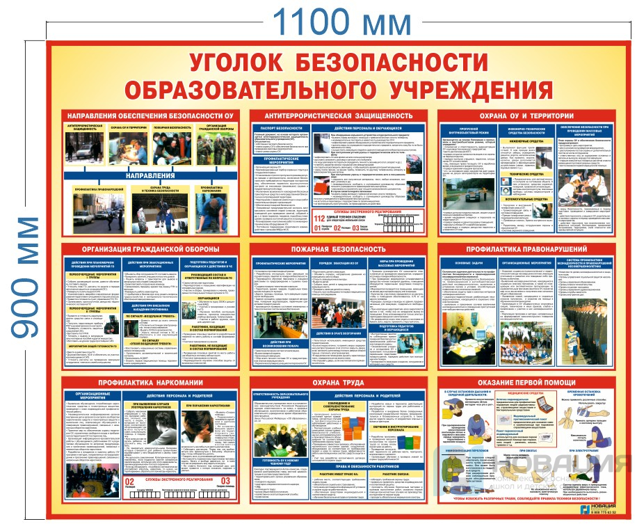 Цветной стенд с броским заголовком украсит уголок безопасности. Полезная информация, разделенная на 9 блоков, повысит уровень грамотности сотрудников и посетителей.