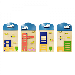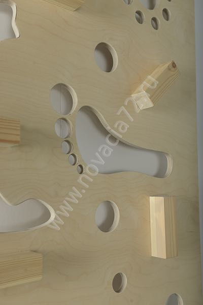Представляет собой деревянную панель с выступами и фигурными вырезами. Лазание способствует общему физическому развитию, тренирует ловкость и координацию.