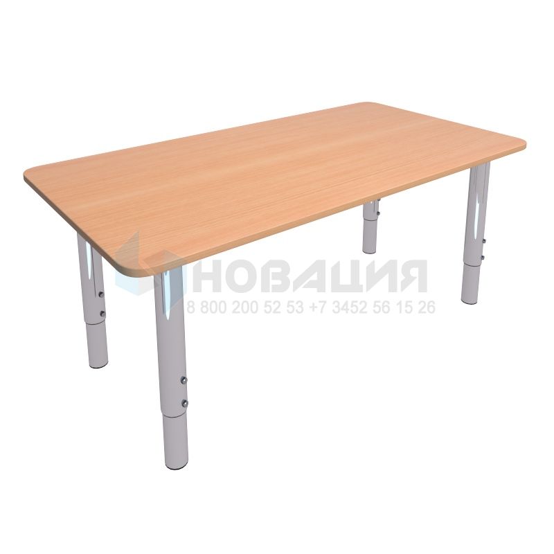 Мебель с прочной прямоугольной столешницей на четырех устойчивых опорах подходит для детского сада. Стол подстраивается под разные ростовые группы, имеет скругленные края и ровную рабочую поверхность.