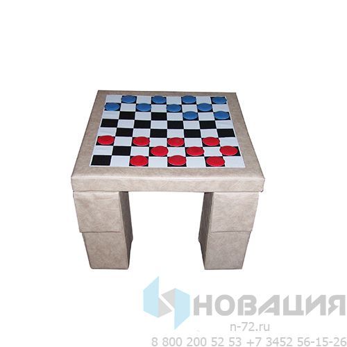 Дидактический столик состоит из 4-х мягких модулей-ножек, мата-поля и 22-х шашек. Способствует сенсорному, познавательному развитию детей и тренирует мелкую моторику. Может использоваться в учебных целях в ДОУ и школе.
