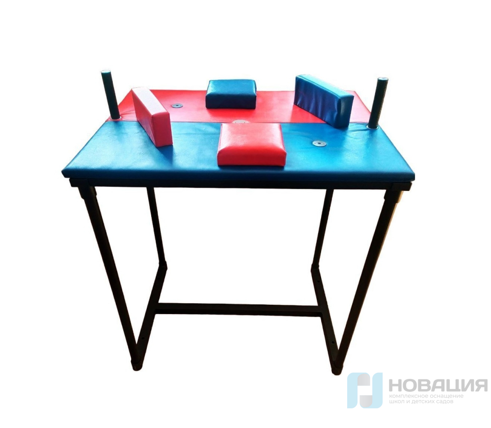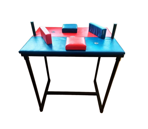 Разборный стол для армрестлинга удобен для быстрой сборки и компактного хранения после тренировок. Все размеры, включая подушки, подлокотники и ручки, соответствуют правилам армрестлинга.