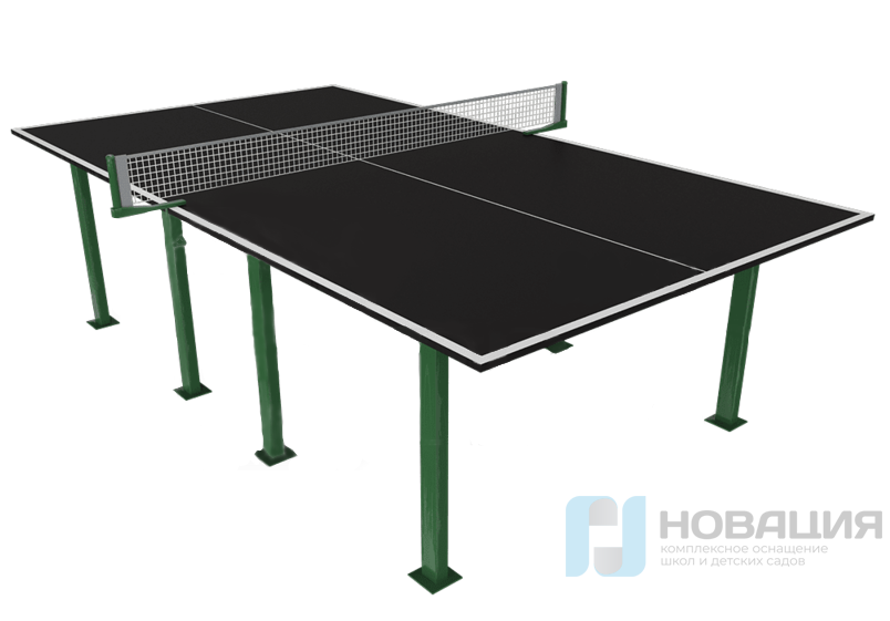 Стол изготавливается из металлической трубы, окрашенной полимерно-порошковой краской, устойчивой к воздействию неблагоприятных погодных условий и ультрафиолета. Фанера покрыта специальной пропиткой и окрашена акриловой краской и лаком. Сетка и крепления для сетки входят в комплект.