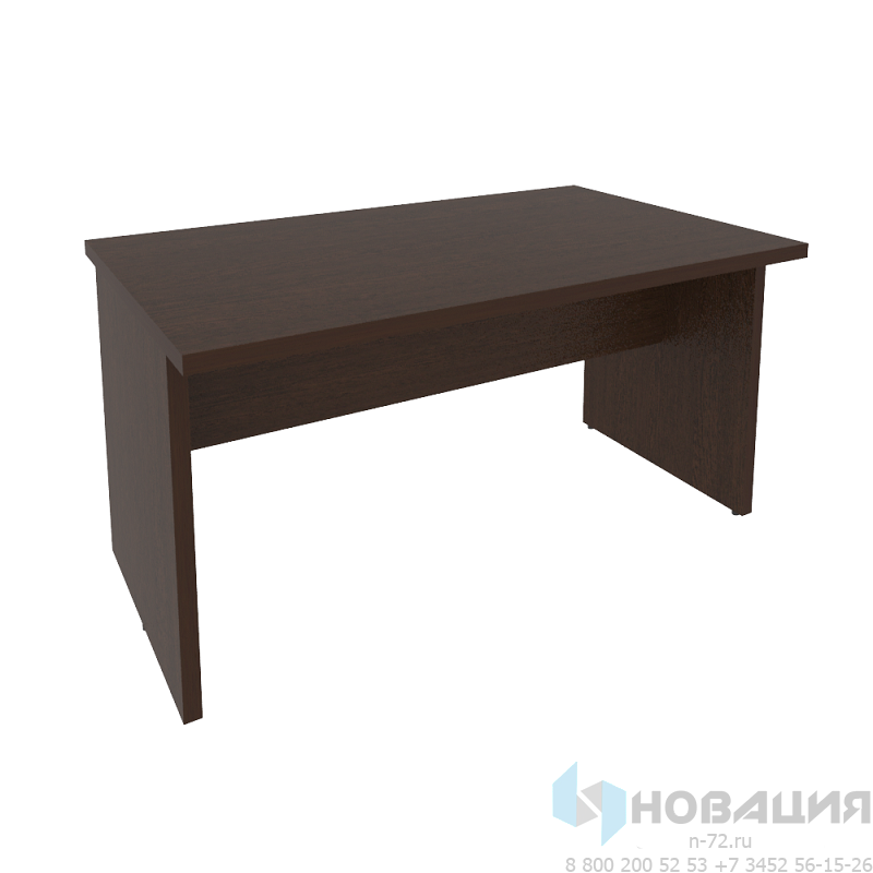 Переговорный стол с 2-мя сплошными боковыми опорами и короткой царгой, расположенной под прямоугольной столешницей по центру, устанавливается в кабинете муниципального учреждения. Поверхность из ЛДСП отделана кромкой (0,4 и 2 мм) в цвет мебели. Предусматривается регулировка опор под неровности покрытия.