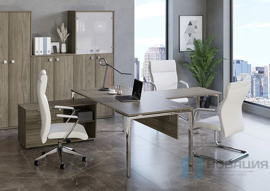 Стол для руководителя с тумбой и брифинг-приставкой