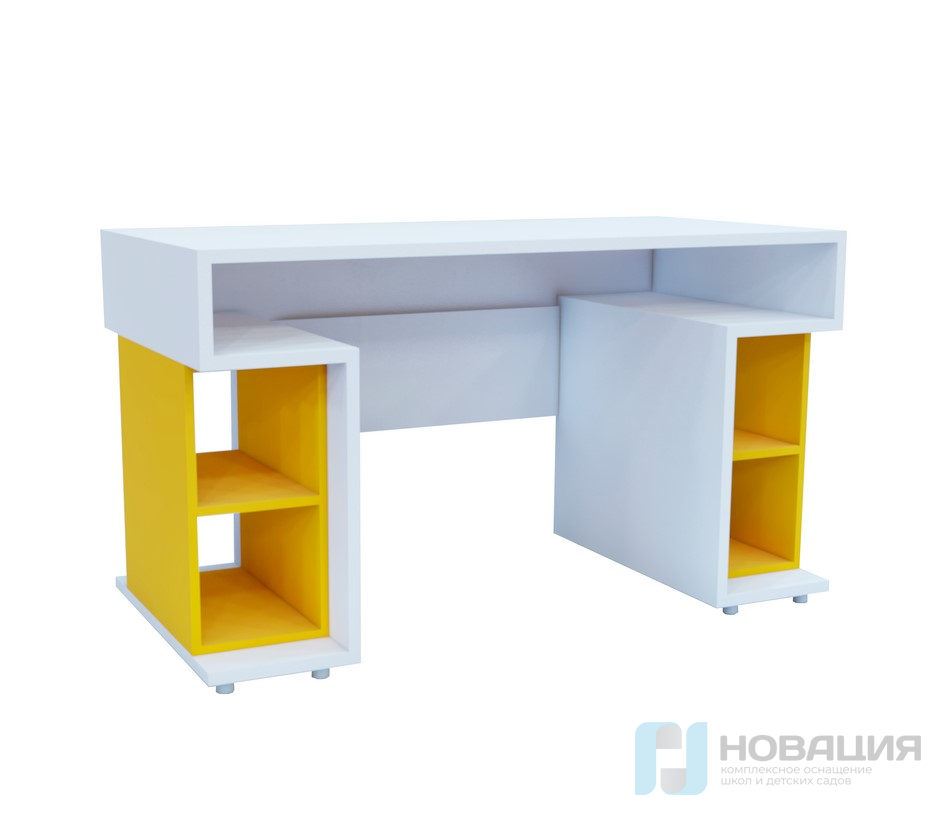 Цветовая гамма стола отличается оригинальностью: комбинированные варианты белого и серого, а также яркие акценты в оранжевом, желтом, зеленом и синем цветах делают его привлекательным для учебной обстановки. Эти оттенки способствуют созданию вдохновляющей и комфортной атмосферы для обучения.