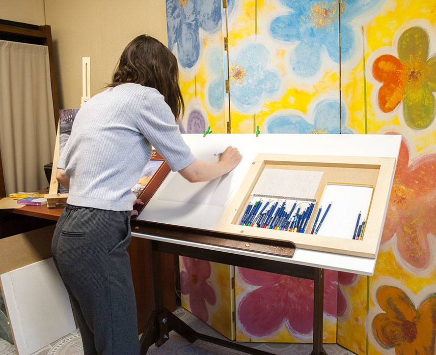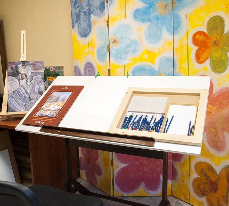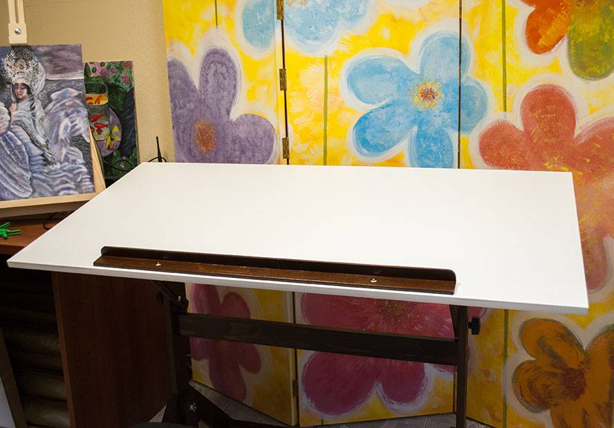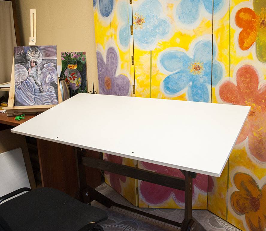 Стол предназначен для занятий живописью. Габариты позволяют работать за ним сидя или стоя.