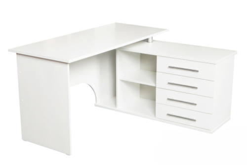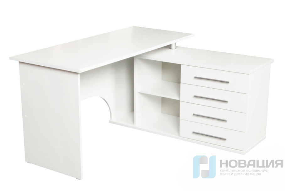Мебель располагает 2-мя горизонтальными полуоткрытыми отделениями. Здесь размещаются часто используемые предметы. Выдвижные ящики с фурнитурой служат для хранения бумажной документации и канцелярии.