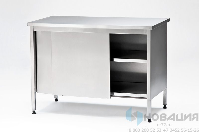 Стол оснащен 2-мя сплошными нижними полками и каркасом с полимерно-порошковым покрытием. Сварной каркас состоит из цельногнутых панелей и профильной трубы.