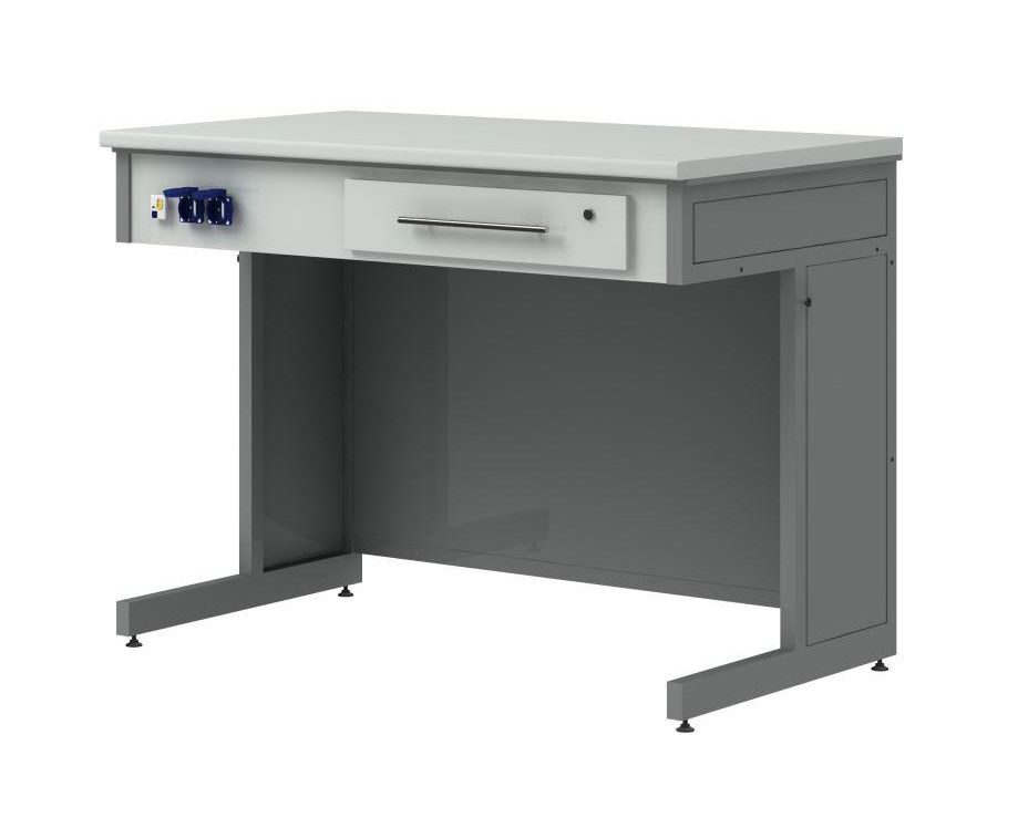 Высота стола позволяет комфортно работать стоя. Благодаря обширной  рабочей поверхности можно устанавливать и подключать к электропитанию различное демонстрационное лабораторное оборудование.