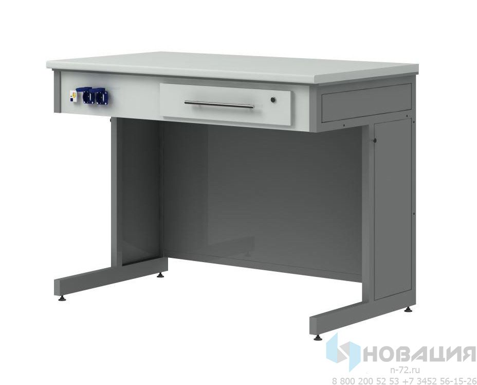Высота стола позволяет комфортно работать стоя. Благодаря обширной рабочей поверхности можно устанавливать и подключать к электропитанию различное демонстрационное лабораторное оборудование.