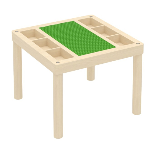 В центре столешницы расположены 2 квадратных платформы для Лего строительства, с двух сторон - ячейки для хранения деталей.
