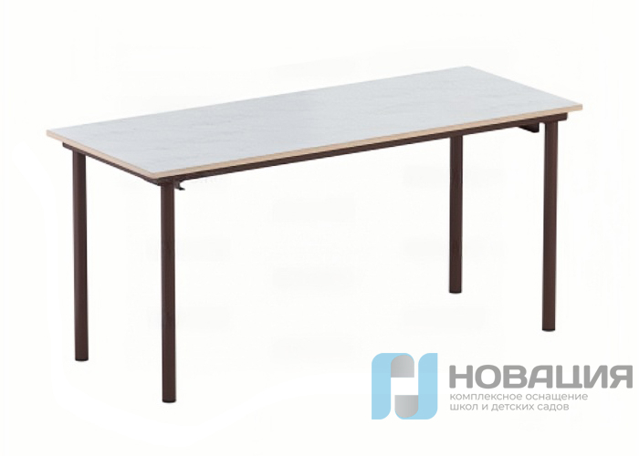 Столешница изготовлена из ДСП и облицована пластиковым покрытием. Торцы обрамлены ПВХ-кромкой. Под столешницей размещаются металлические кронштейны для подвешивания сидячих мест.