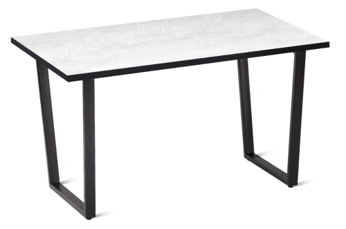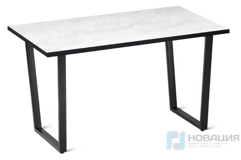 Столешница выполнена из ЛДСП, прямолинейные края облицованы ударопрочной кромкой ПВХ. Опоры стола изготовлены из стальной профильной трубы. На опорах размещаются регулируемые подпятники. Опоры крепятся к столешнице посредством винтов М6.