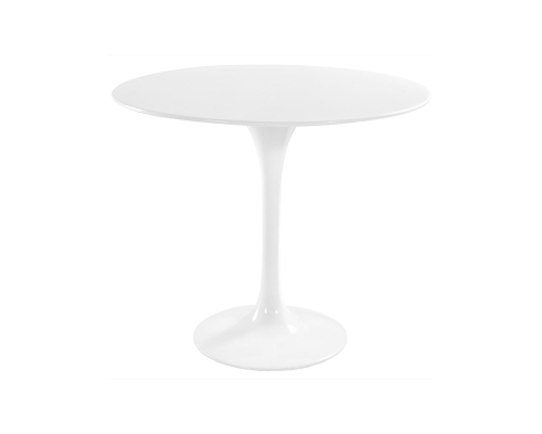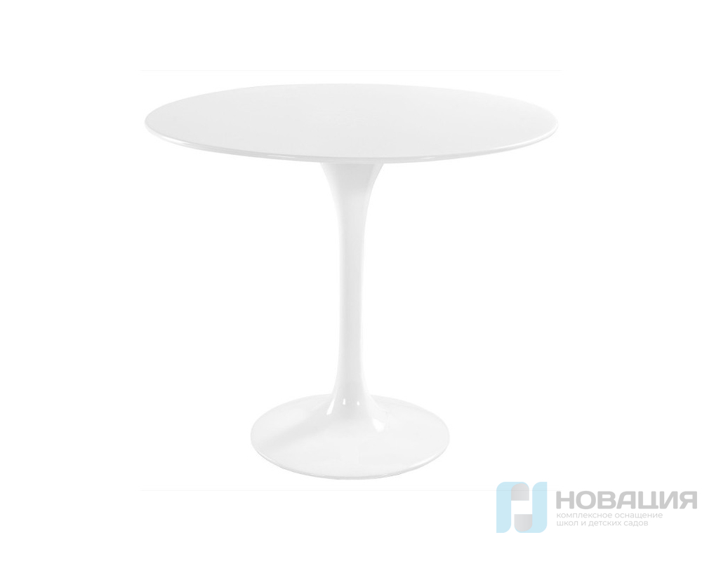 Стол на круглом металлическом основании оснащается изящной стойкой в форме песочных часов и круглой столешницей. Мебель для зоны питания окрашена в белый цвет, акцентирующий внимание посетителя на блюдах.