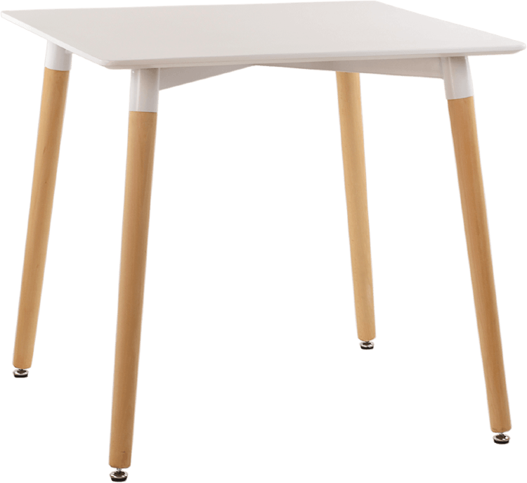 Мебель для столовой или кухни стоит на 4-х опорах из массива дерева. Металлические подпятники круглой формы придают конструкции дополнительную устойчивость. Толщина столешницы из окрашенного МДФ составляет 10 мм. Полимерное покрытие защищает поверхность от царапин. Углы квадратной столешницы закругляются во избежание травматизма.