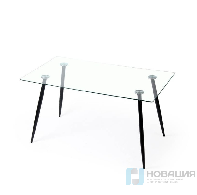 Мебель оснащается прямоугольной столешницей из прозрачного стекла толщиной 8 мм. 4 окрашенные опоры из металла крепятся под углом к столешнице при помощи хромированных элементов. Стол в стиле хай-тек обновит обстановку обеденной зоны или приемной.