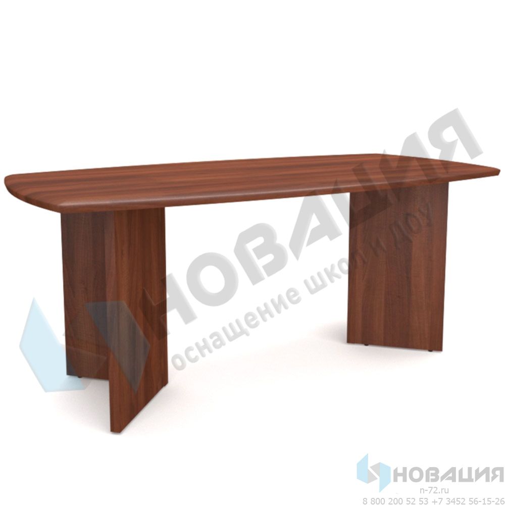Стол для переговоров подходит для административного кабинета руководителя в школе, детском саду и других учреждениях. Конструкция стоит на сдвоенных сплошных опорах, столешница 4-угольной формы имеет скругленные углы.