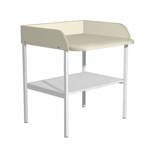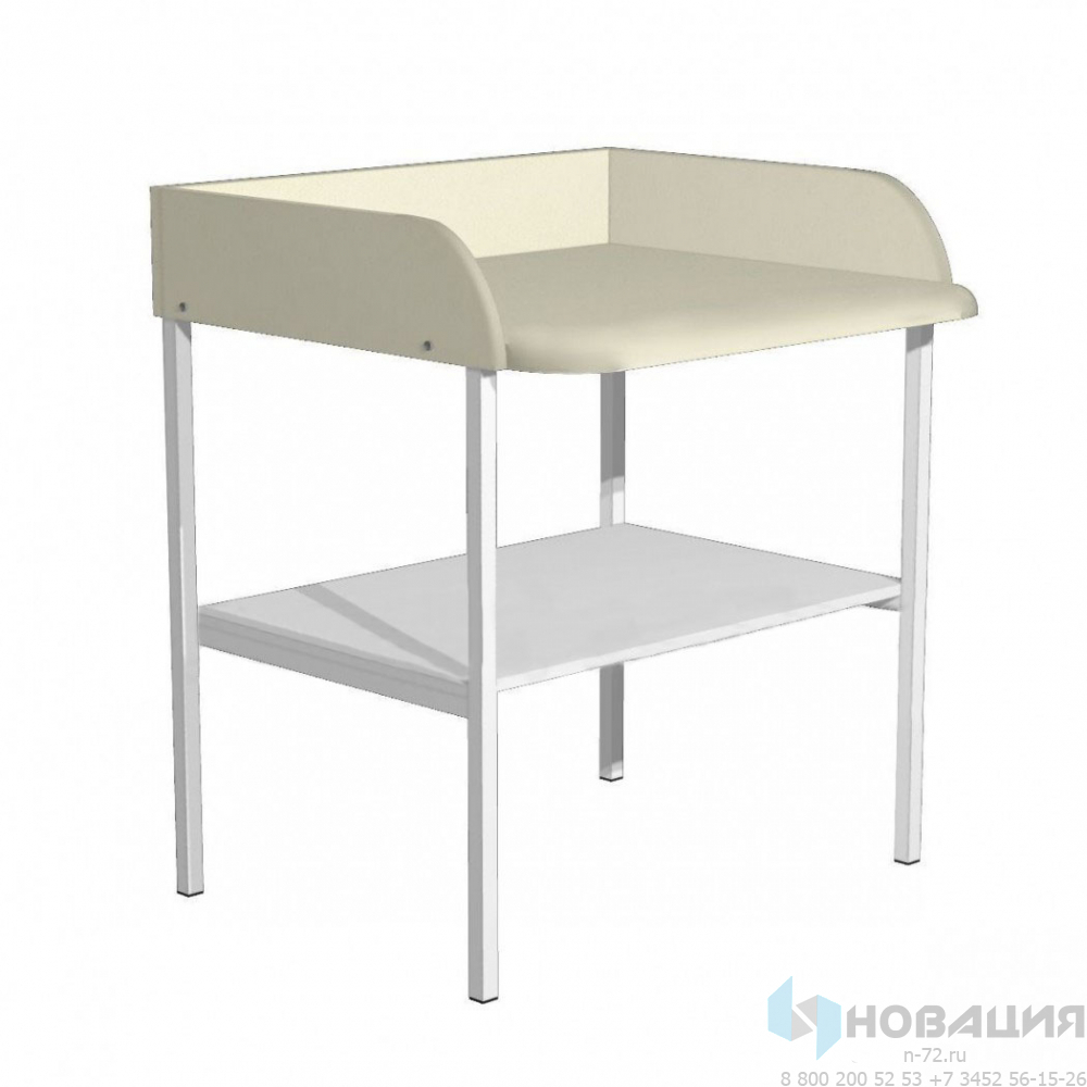 Конструкция включает каркас из профильной трубы, пеленальную поверхность и нижнюю полку для хранения гигиенических принадлежностей. На ножках установлены пластиковые заглушки.