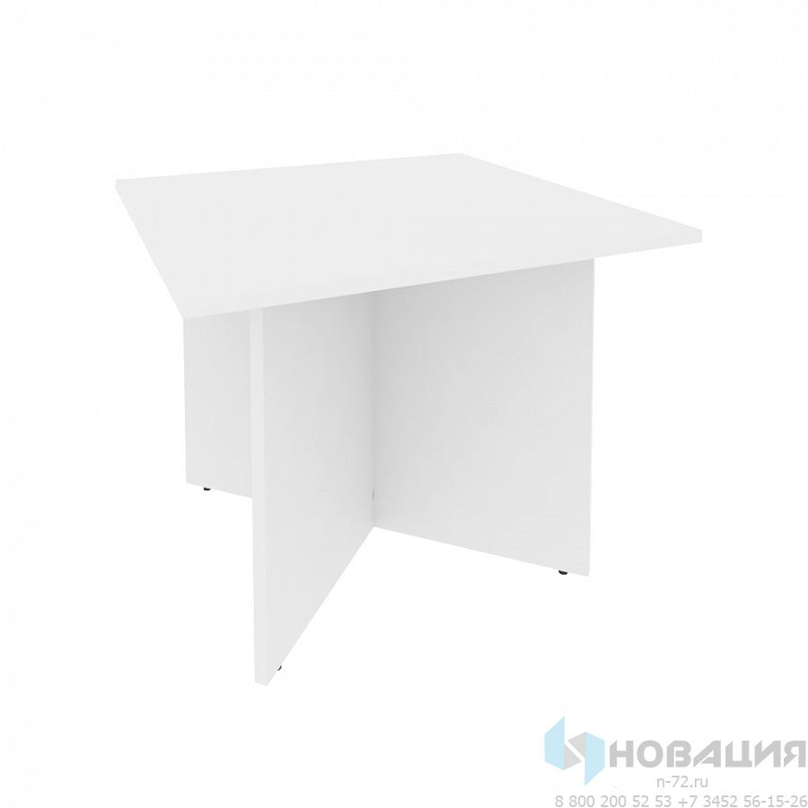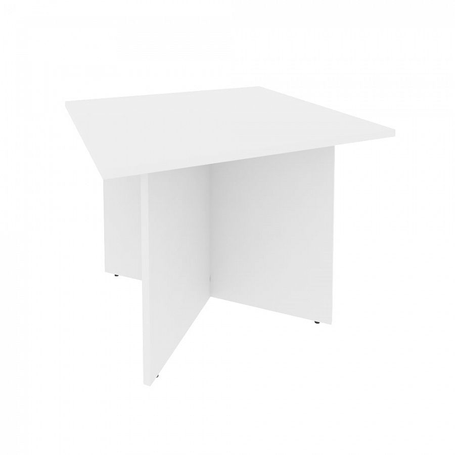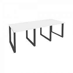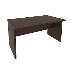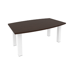 Мебель для переговоров состоит из прямоугольной столешницы, закрепленной на Х-образном каркасе. 4 сплошные скрещивающиеся панели поддерживают конструкцию. Детали из ЛДСП отделаны кромками толщиной 0,4 мм и 2 мм. Пластиковые элементы на опорах с винтами регулируются под неровности пола.