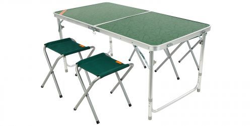 В комплекте стол и четыре стула. Отличается простотой и удобством хранения: в сложенном виде стулья помещаются в стол. Стол рассчитан на нагрузку в пределах 30 кг, стулья - до 100 кг.