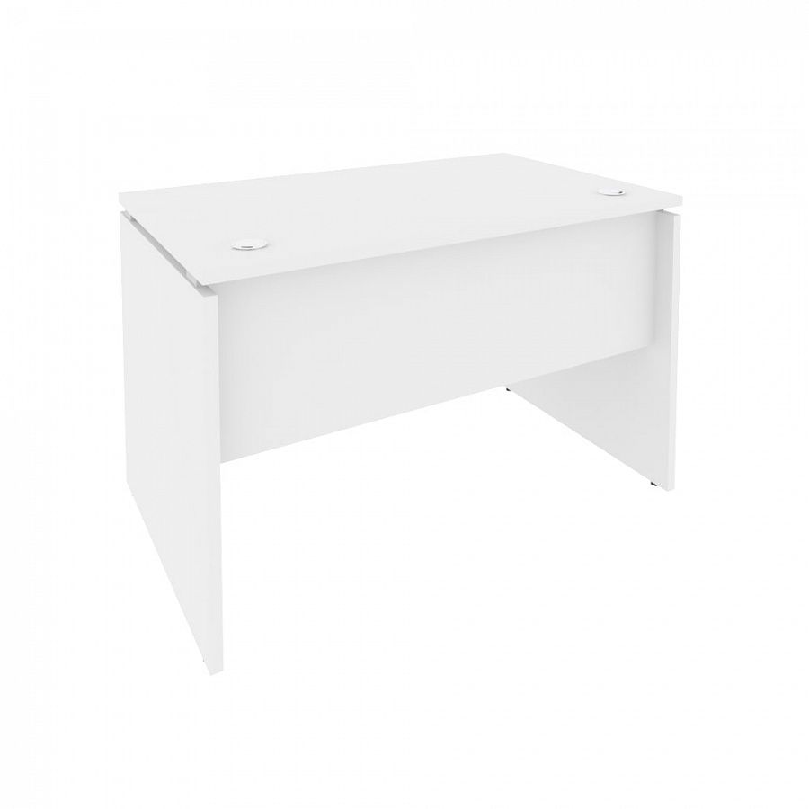 Письменный стол оснащается сплошными боковыми опорами, царгой и прямоугольной столешницей с 2-мя пластиковыми заглушками для кабель-каналов. Детали из ЛДСП отделаны кромками толщиной 0,4 мм и 2 мм. Опоры с пластиковыми элементами и винтами регулируются под неровности пола.