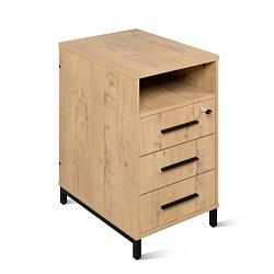Столешница изготовлена из ЛДСП толщиной 22 мм и облицована ударопрочной кромкой ПВХ 2,0 мм. Царга выполнена из ЛДСП толщиной 16 мм и облицована кромкой ПВХ 0,4 мм. Детали стола соединяются между собой при помощи эксцентриковых стяжек, евровинтов и винтов. В столешницу вмонтированы две розетки кабельного канала. Опоры оснащены пластиковыми заглушками с регулируемыми подпятниками М8.