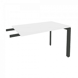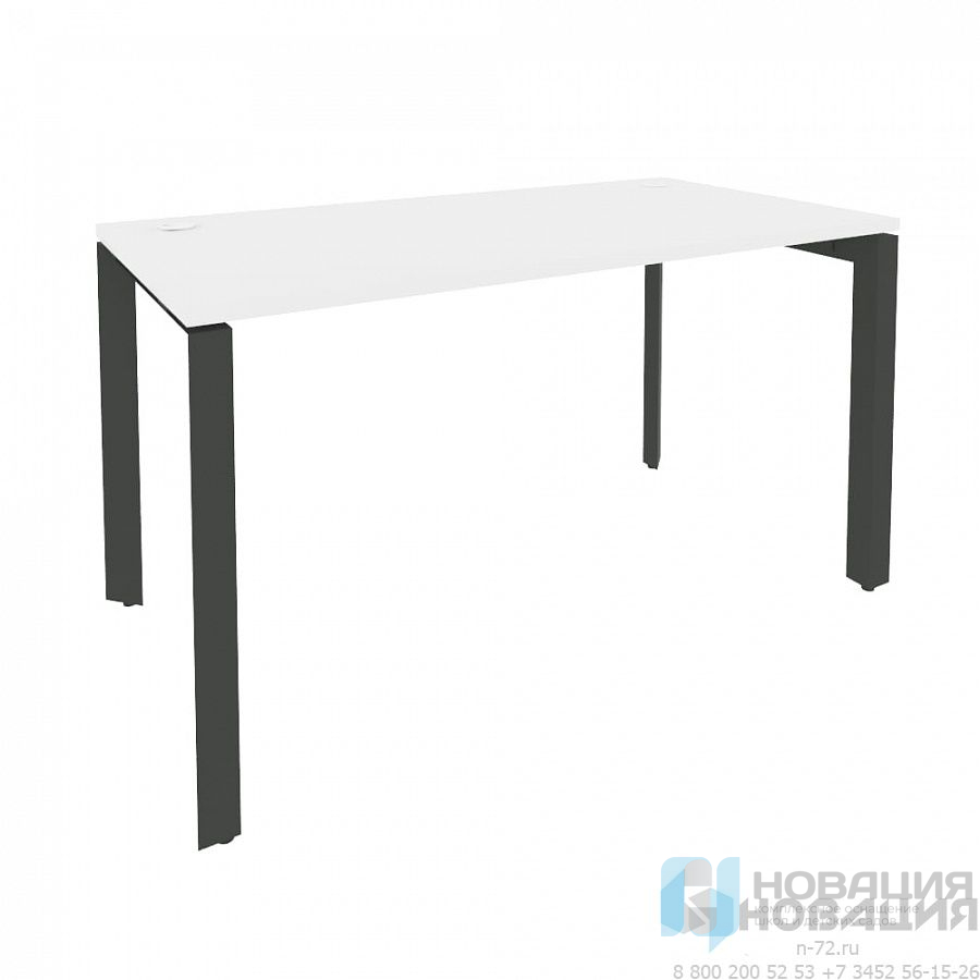 Мебель с прямоугольной столешницей на П-образных ножках размещается в офисе или кабинете. Каркас выполняется из металлических труб. Пластиковые элементы на опорах с винтами регулируются под неровности пола. Столешница из ЛДСП отделана кромкой толщиной от 0,4 мм до 2 мм.