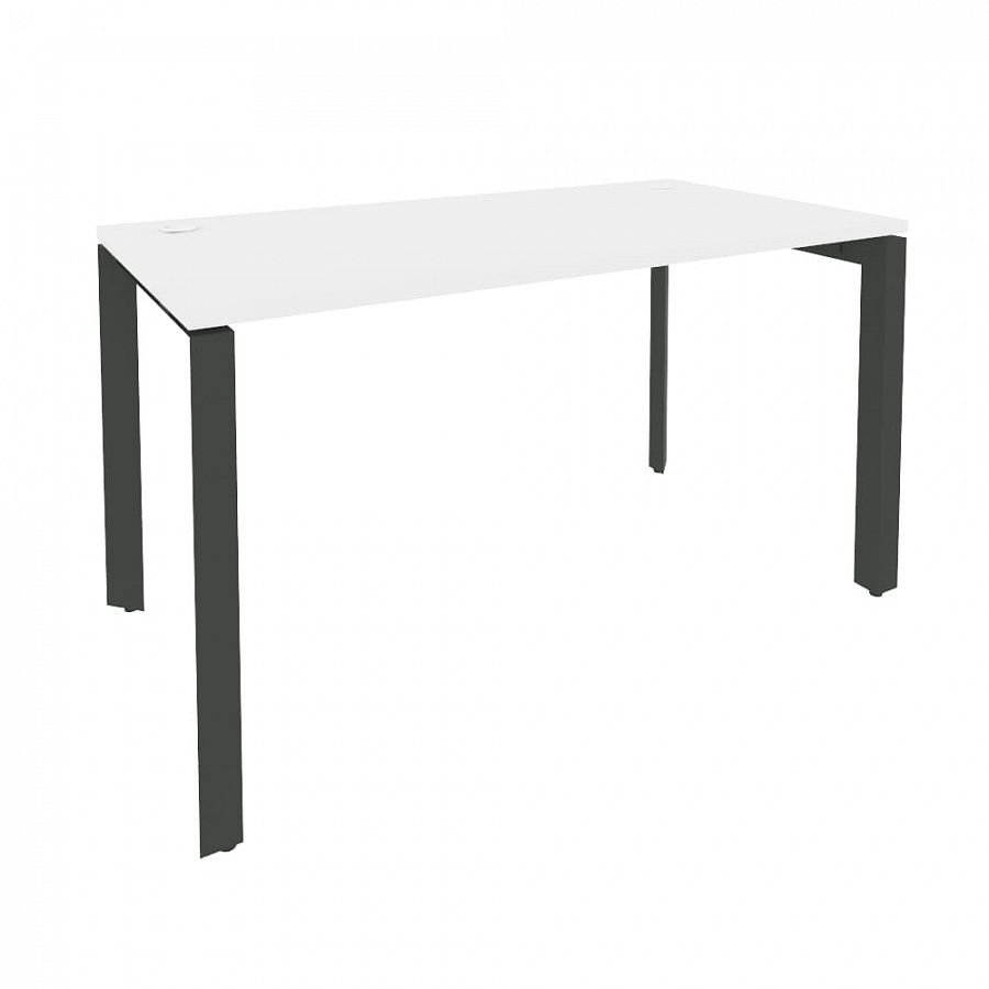 Мебель с прямоугольной столешницей на П-образных ножках размещается в офисе или кабинете. Каркас выполняется из металлических труб. Пластиковые элементы на опорах с винтами регулируются под неровности пола. Столешница из ЛДСП отделана кромкой толщиной от 0,4 мм до 2 мм.