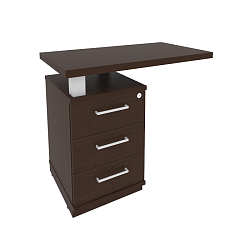 Классический стол для кабинета руководителя стоит на прочном каркасе с мощной царгой и сплошными боковыми опорами. Предусматривается регулировка опор под неровности покрытия. Поверхности из ЛДСП отделаны кромкой (0,4 и 2 мм) в цвет мебели.