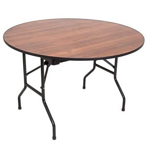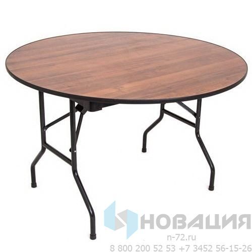 Складная мебель с жесткими распорками оснащена круглой столешницей. Пленка на рабочей поверхности (имитация рисунка ценной породы дерева) поддается влажной уборке. При эксплуатации опоры с колпачками не царапают пол.