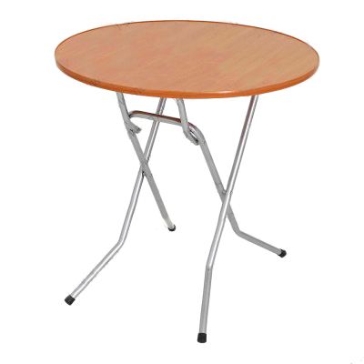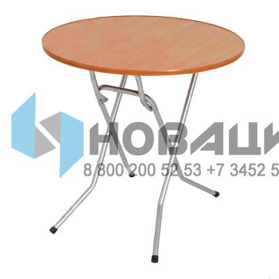 Складная мебель с Х-образными опорами подходит для зоны приема пищи. Круглая столешница после эксплуатации приводится в вертикальное положение. ЛДСП декорирована имитацией рисунка ценной породы дерева. Пленка из меламина устойчива к действию УФ-лучей. Ножки с защитными колпачками уберегают пол от царапин.