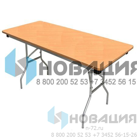 Мебель на жестких распорках подходит для обеденной зоны: после эксплуатации стол складывается. ЛДСП с закругленными углами закрепляется на металлической раме. Оформление пленкой из меламина имитирует рисунок ценной породы дерева. Материал не выгорает на солнце. Опоры с пластиковыми колпачками не царапают пол.