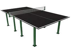 Центральная стойка оснащена двумя регулируемыми опорами. Крайние опоры оснащены колесиками для перемещения. Игровые поля выполнены из ЛДСП.