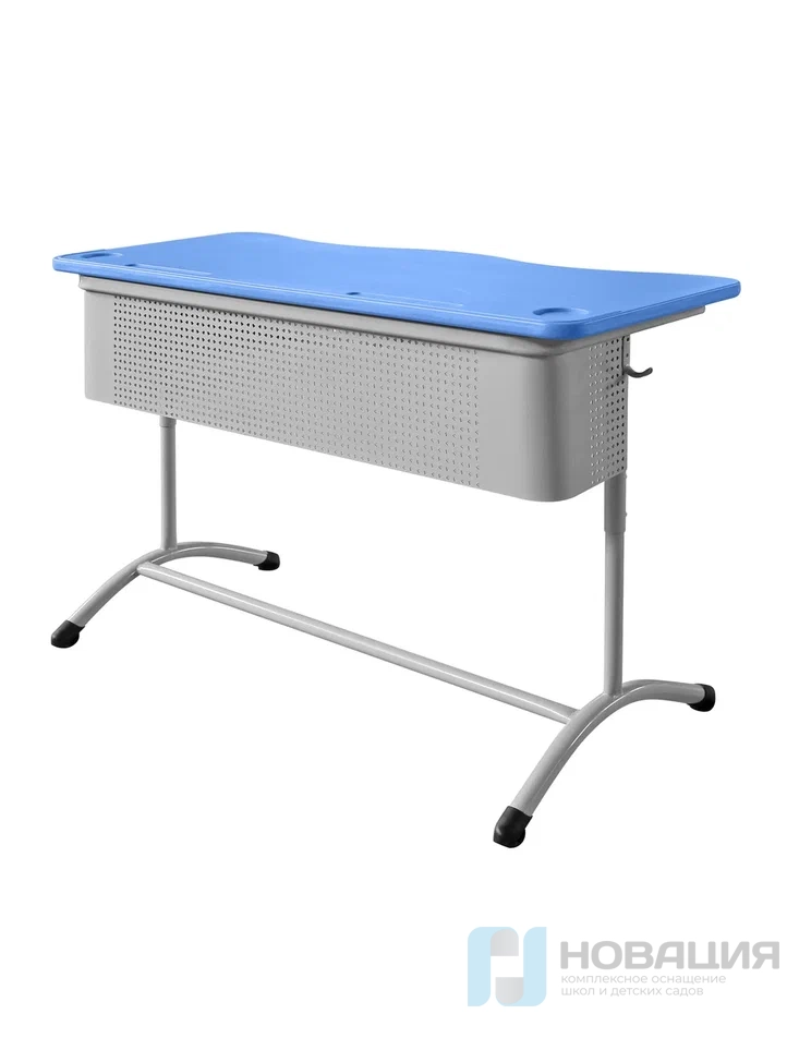 Столешница изготовлена из пластика толщиной 25 мм, не имеет кромки и острых углов. Крепится к каркасу при помощи винтов. Оснащена экраном из перфорированного металлического листа. В столешнице есть эргономичный вырез, а также углубления для ручки и кружки.