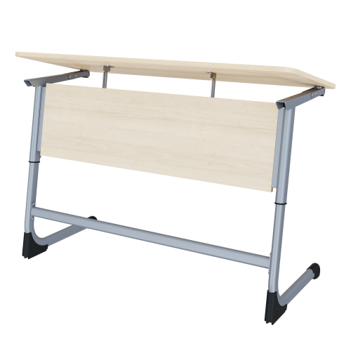 С двух сторон парта оборудована механизмом регулировки угла наклона столешницы. Это позволяет каждому ученику настраивать рабочую поверхность под свои нужды, будь то чтение, письмо или рисование, снижая нагрузку на спину и глаза.
