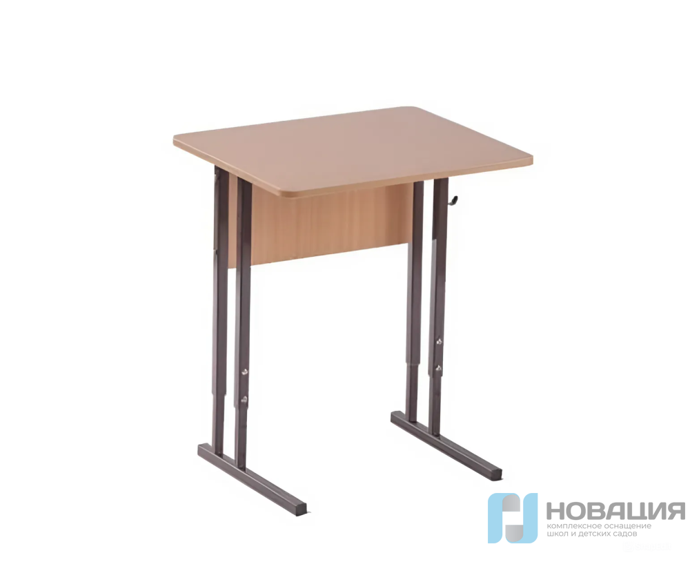 Стол выполнен на металлокаркасе из стальных труб. Столешница из ЛДСП обрамлена ударопрочной кромкой из ПВХ толщиной 2 мм, края имеют закругления радиусом 30 мм.