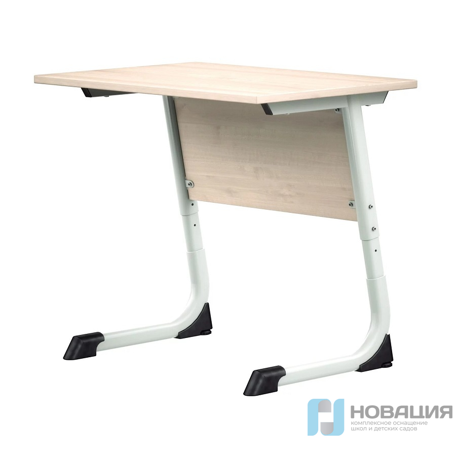 Регулируемый стол на металлокаркасе подходит для учебы. Оснащен двойными крючками по числу мест. Опоры прикрыты травмобезопасными наконечниками (2 из них с углом наклона 0- 60°, подстраиваются под неровности пола). Экран и столешница выполнены из ЛДСП с антивандальными кромками.