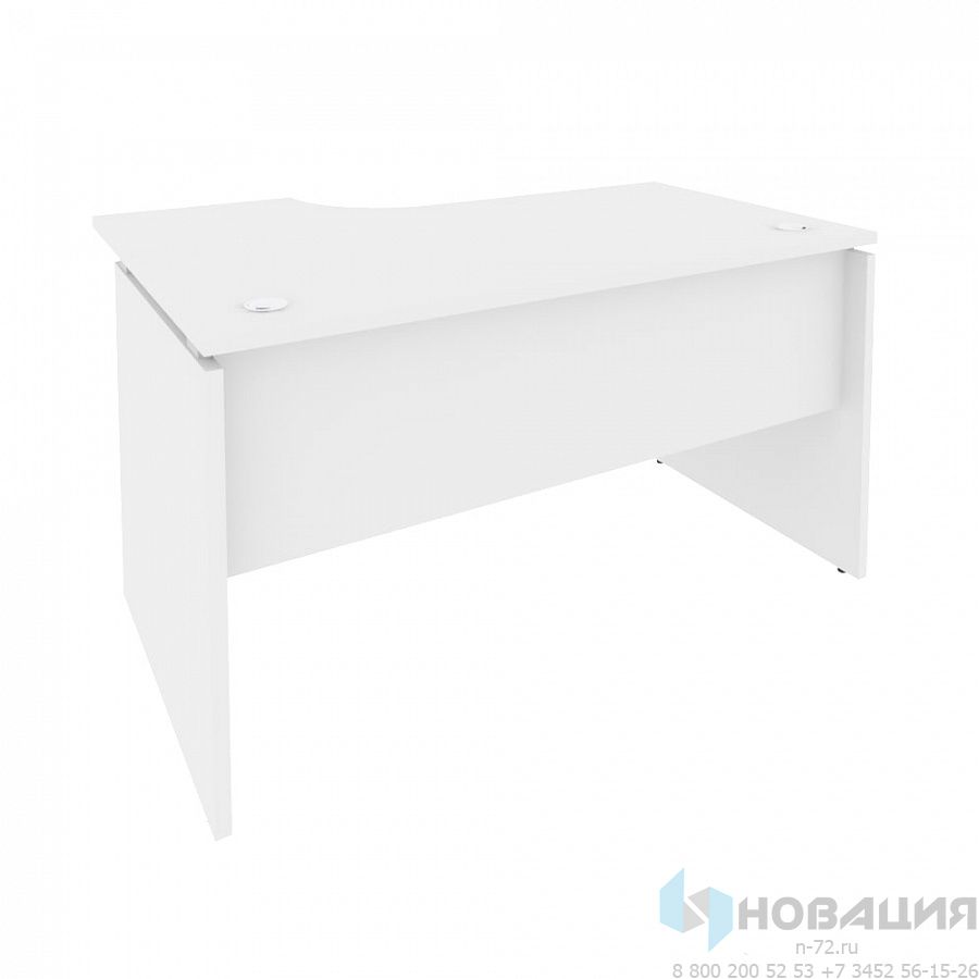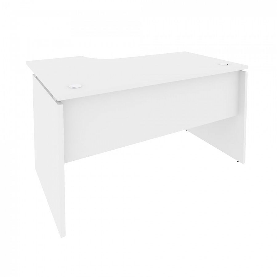 Угловой стол на П-образном каркасе оснащается столешницей с эргономичным вырезом. В комплекте 2 пластиковые заглушки для кабель-каналов и царга. Детали из ЛДСП отделаны кромками толщиной 0,4 мм и 2 мм. Пластиковые элементы на опорах с винтами регулируются под неровности пола.