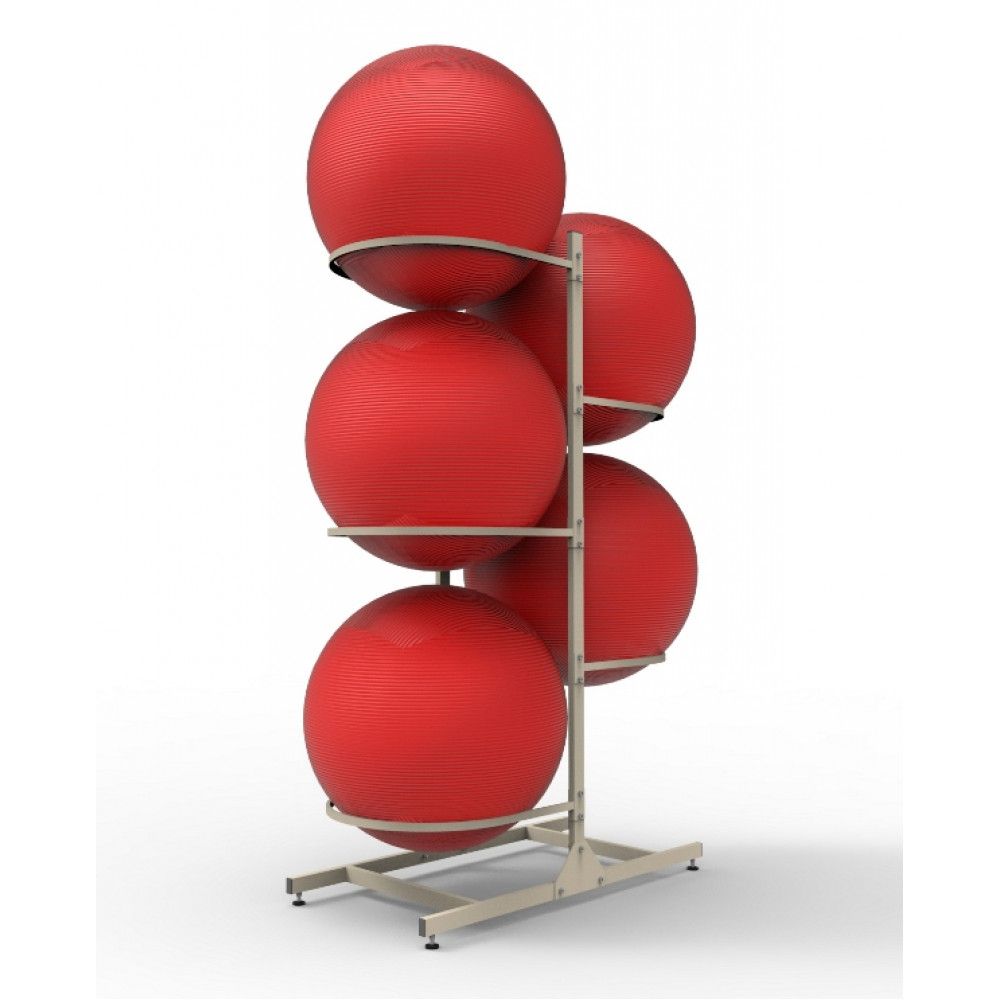 В компактной двухсторонней стойке для спортзала каждому из 5 мячей отведено отдельное место. Синтетические мячи используются во время занятий фитнесом.