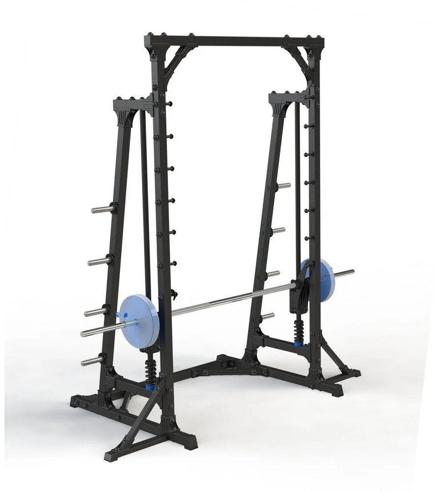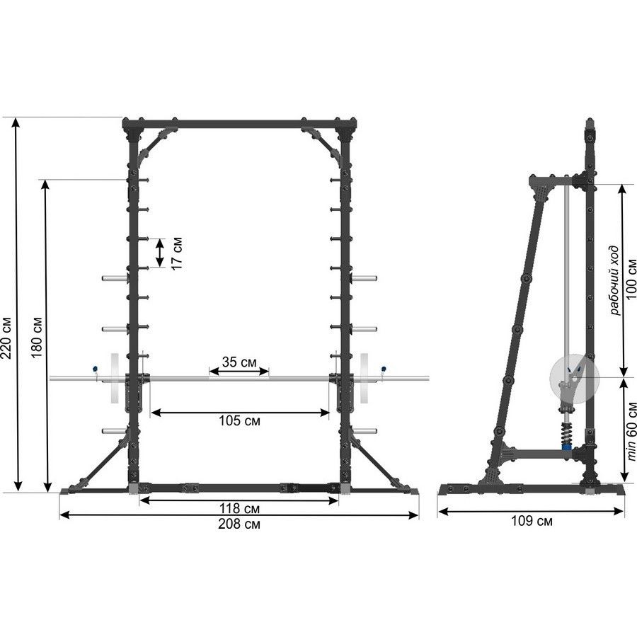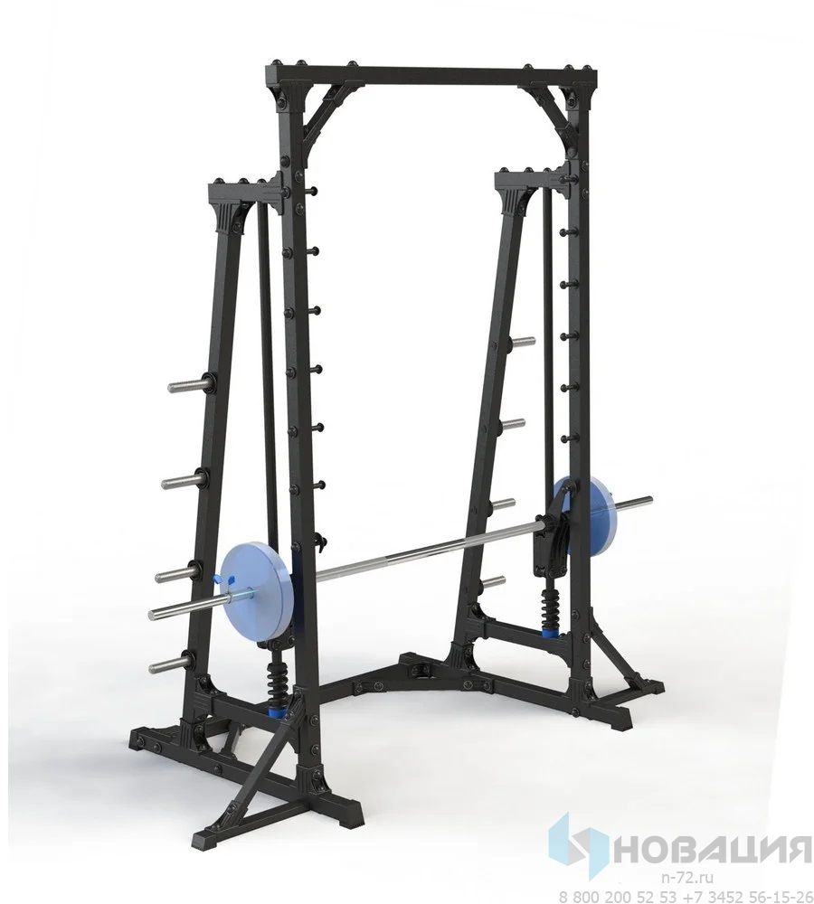 Стойка для грифа диаметром 30 мм позволяет выполнять силовые упражнения. Вес грифа вместе с системой базирования составляет 16,5 кг. Общая масса дисков 71 кг.
