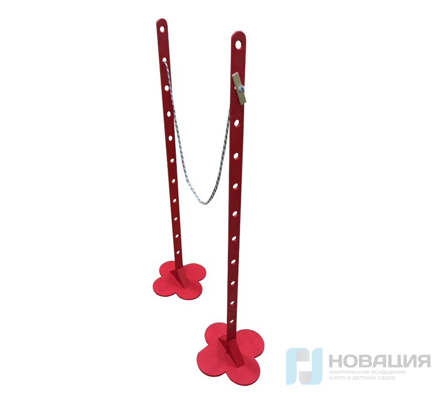 Сборная конструкция состоит из двух вертикальных стоек с веревкой, заменяющей жесткую планку. В стойках 12 отверстий для перемещения веревки.