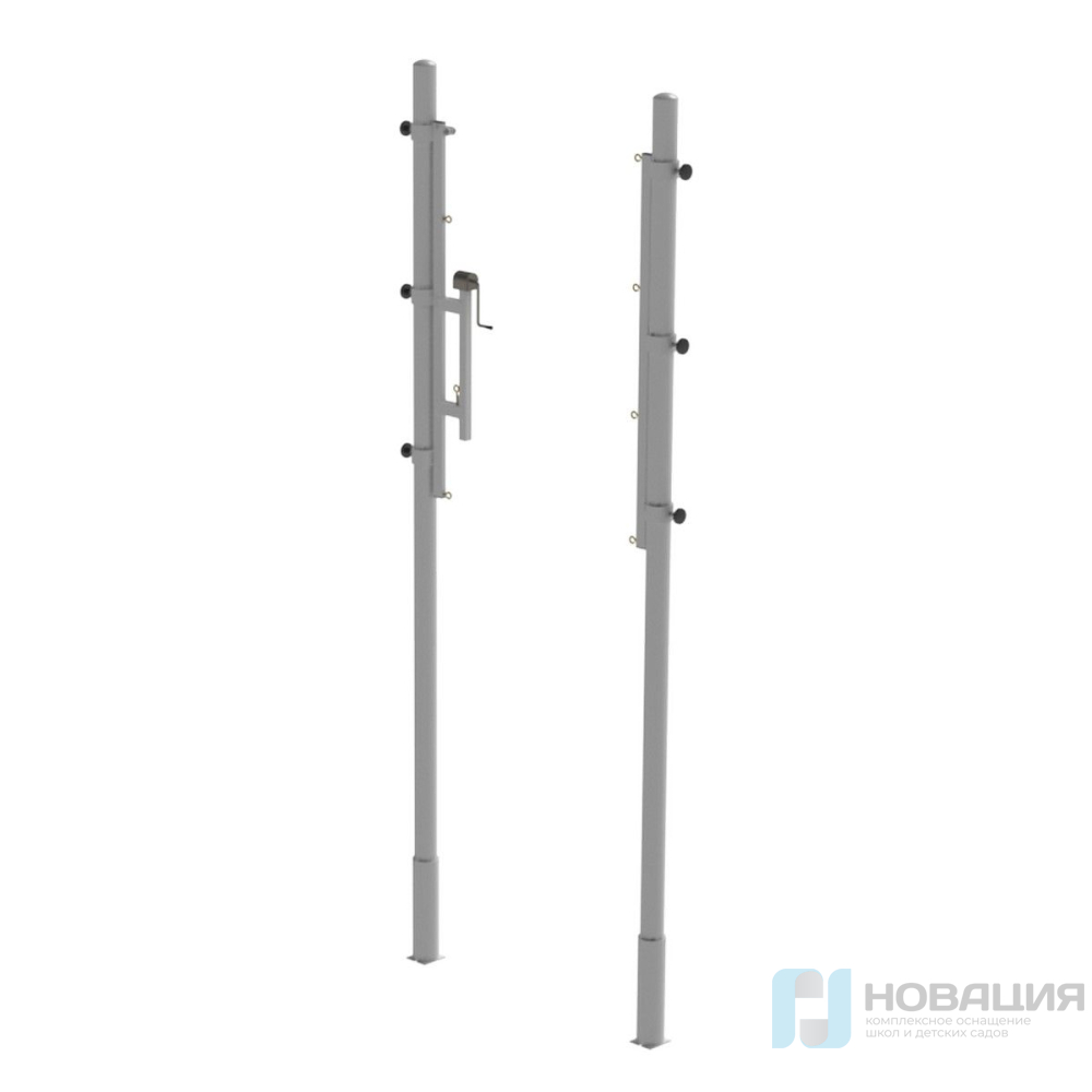 Комплект универсальных стоек (2 шт.) используется во время игры в большой теннис, бадминтон, волейбол. Предусмотрен механизм натяжения сетки.
