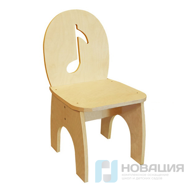 Стул из фанеры и покрывается лаком в 2 слоя. Спинка украшена резным рисунком ноты.