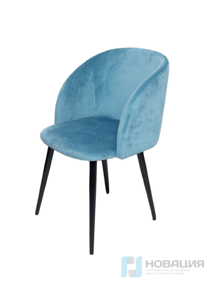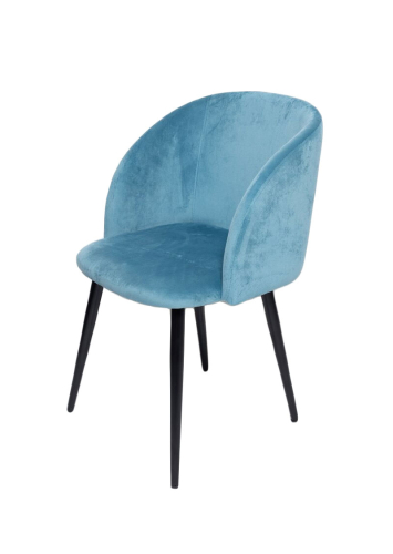 Мягкое кресло с обивкой из вельвета представлено в цвете аквамарин. Обеденная мебель на 4-х ножках выдерживает нагрузку в 120 кг. Высота сиденья над полом составляет 485 мм. Ножки из металла окрашены в черный цвет. Стул с подлокотниками и плавной спинкой сохраняет тепло, придает интерьеру столовой или зоны отдыха презентабельный вид.