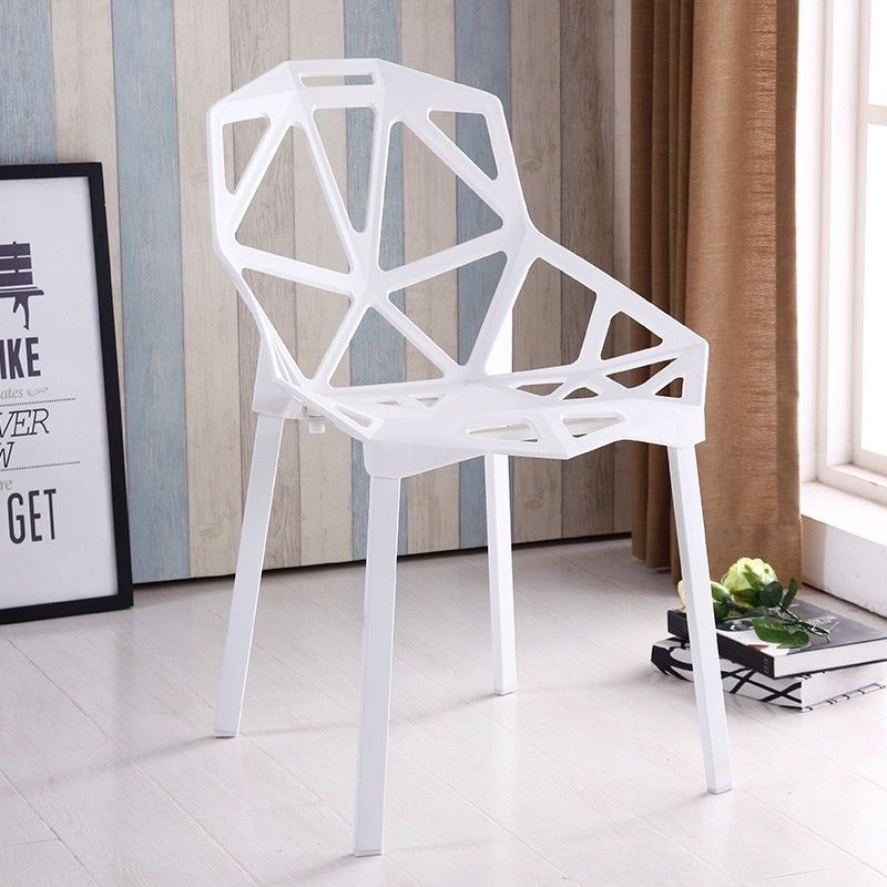 Современное кресло с узорчатым перфорированным каркасом заметно издалека. Обеденная мебель оснащается 4-мя ножками, окрашенными в цвет сиденья и спинки. В наличии подпятники. Конструкция подходит для зоны отдыха или приема пищи, выдерживает до 100 кг. Высота от пола до сиденья кресла составляет 450 мм.