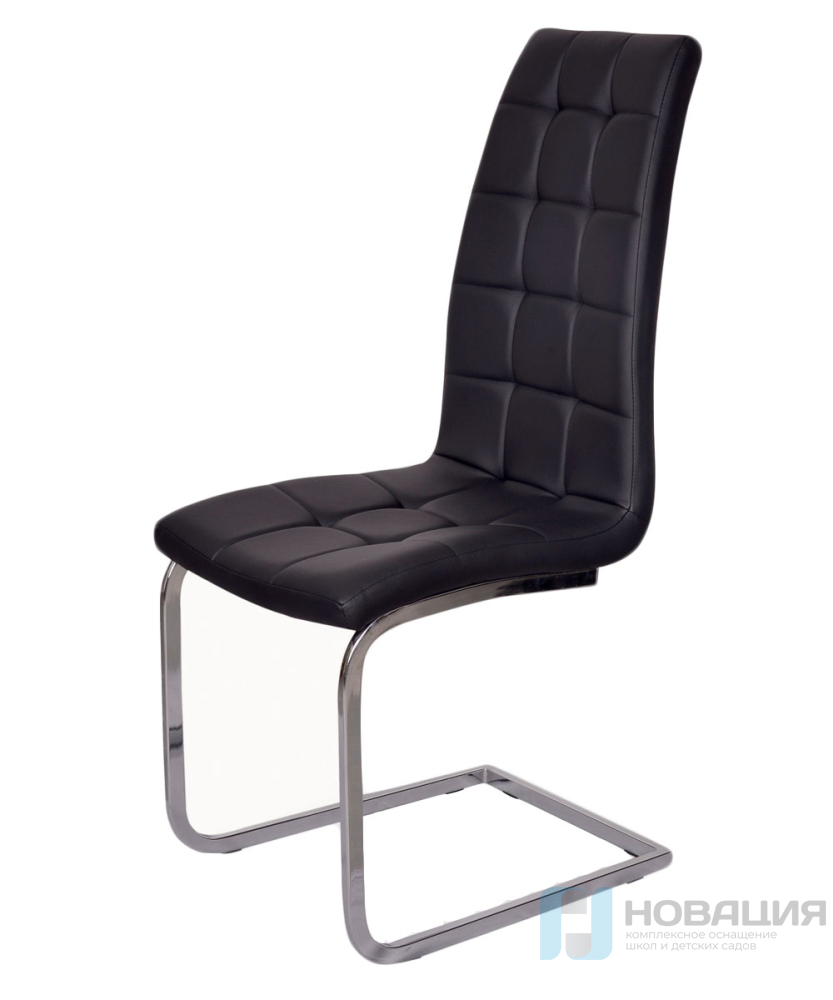 Обеденное кресло на изогнутых хромированных опорах оснащается мягким сиденьем и эргономичной спинкой. Поверхность чехла на внутренней стороне изделия прострочена для равномерного распределения нагрузки до 120 кг. 2 опоры устойчивого стула переходят в полозья, соединяющиеся друг с другом.
