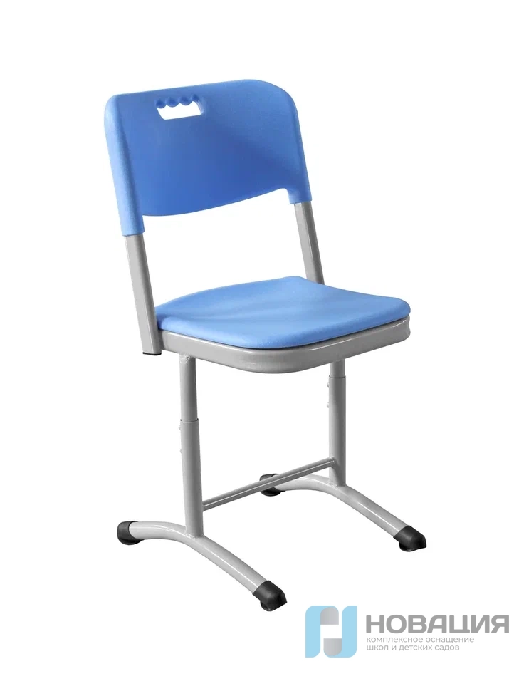 Верхняя часть каркаса стула изготовлена из стальной трубы диаметром 28 мм, а нижняя - из трубы 32 мм. В спинке есть отверстие для удобства переноски. Эргономичные спинка размером 245х410 и сиденье размером 370х390 мм с отверстиями для вентиляции выполнены из антивандального пластика.