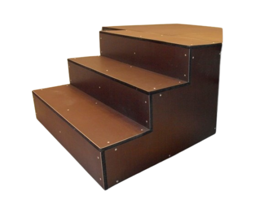 Предназначены для легкого подъема на мобильную сцену. Ширина лестницы соответствуют размерам сценических модулей, а верхняя площадка совпадает с уровнем площадки сцены.